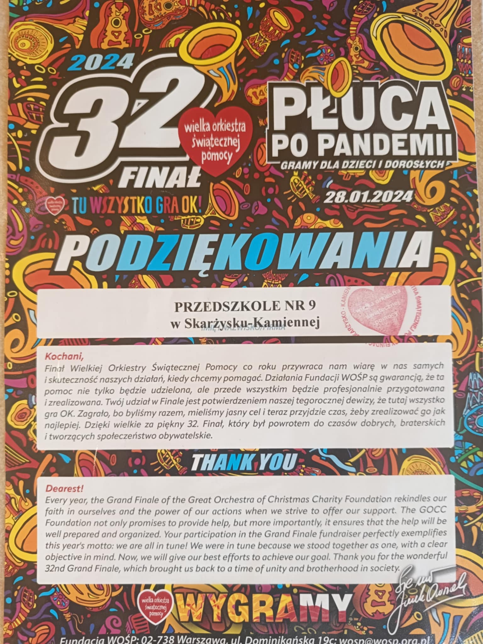 Jak co roku nasze przedszkole brało udział w 33 Finale Wielkiej Orkiestry Świątecznej Pomocy.